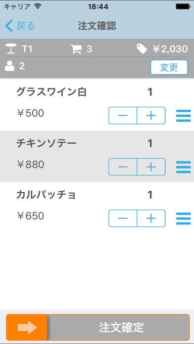 お客さんが後から気が変わって注文を変えた場合にも即座に対応することができます。メニューのプラスボタンを押せば数を増やし、マイナスボタンを押せば一つ数を減らすことができるからです。