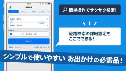 乗り換えや運賃など目的地に着くまでに必要なあらゆる情報を簡単操作で検索出来る!