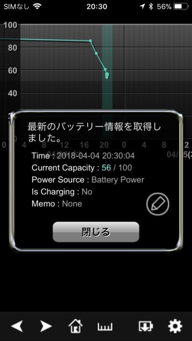 App Storeより引用『バッテリーログ』は電池残量の推移をグラフ表示するツールです。