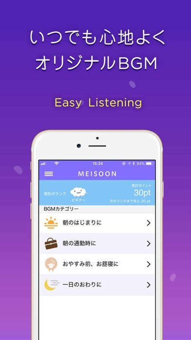 いつでもどこでも目的に合わせて瞑想ができるのが良いと思いました。流れるBGMも心地よいです。