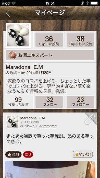 簡単にお酒のうんちくや工夫を見つけたり投稿したりできます。