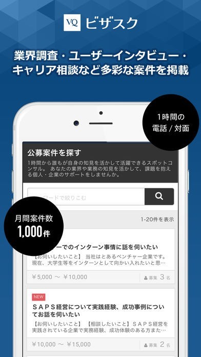 このアプリでは、業界調査、キャリア相談、インタビューなど、自分の能力を発揮できるさまざまな案件が掲載されているため、自分の能力や経験を他の人のために役立てることができます。
