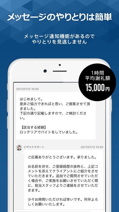 このアプリでは、仕事を依頼してくれた人とのやり取りをアプリ内ですることができる機能が付いているため、メールやスカイプなどを使わなくともコミュニケーションをとることができます。