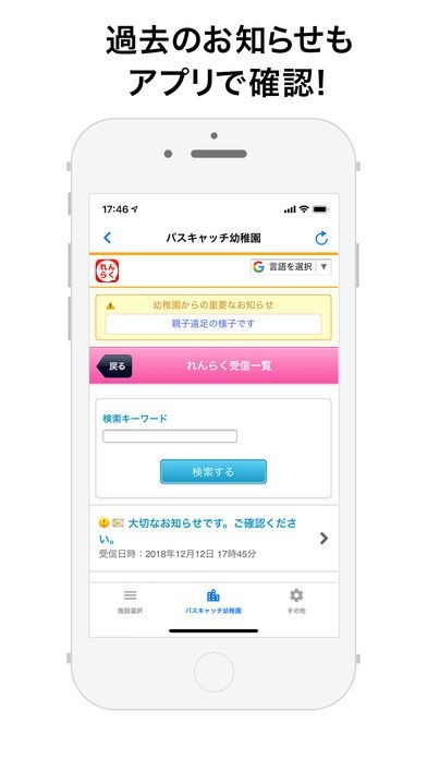 登録している施設からの案内や緊急時の災害連絡メールをアプリ上で受け取ることができるので、迷惑メールフィルターで弾かれる事もなく、施設とのやり取りがスムーズになるアプリです。例えば登録している施設が保育園や幼稚園だった場合は、出欠の連絡や施設からのお知らせ、物品注文や請求額の確認などができます。過去のお知らせも一覧で表示されているので見直すことができます。プッシュ通知を利用すれば、リアルタイムで情報を知ることができるので便利です。