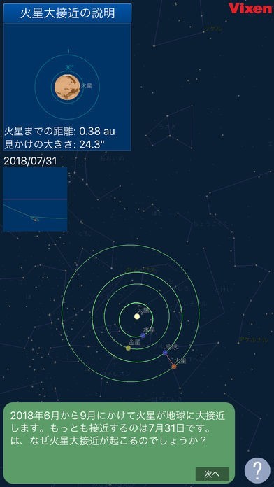 解説機能を付与!火星の接近理由やその魅力を説明してくれる!