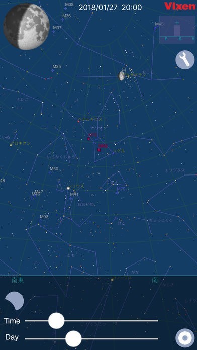 全方位の星図がおさめられており、日々の月の入・月の出・日の出・日の入の時刻が表示されており、また方角を示す情報も入っているので、月の観望をするときには便利です。また月食も収録されており、過去のものから未来のものまでシミュレーションをすることができます。サムネイル表示も可能なので、どれくらい月食が進んでいるかも分かります。