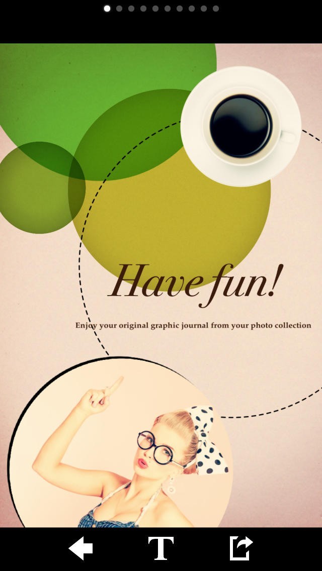 - 作成したグラフィックを、Twitter, Facebook, Flickr, Instagramに投稿もしくは、 iPhoneのフォトアルバム保存