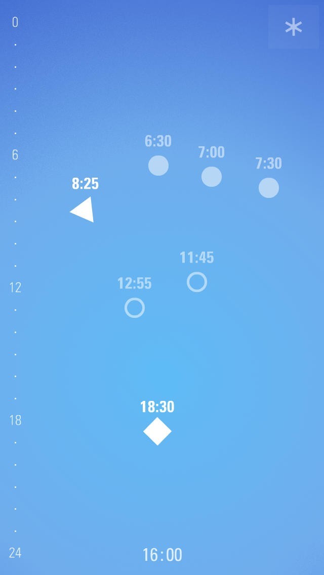 アプリの背景は空をイメージした色に時間とともに変化します。色んな時間に起動してみてください。