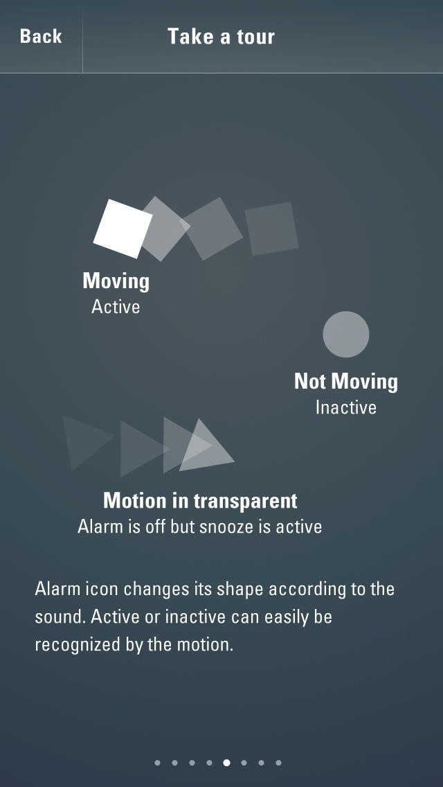 App Storeより引用VISUALARMはかんたんに起きる時間を設定できるアラームアプリです。スクリーンをタッチ&ホールドするとアラームを作成、アラームはドラッグで時間調整、使わなくなったらフリックで削除ができます。