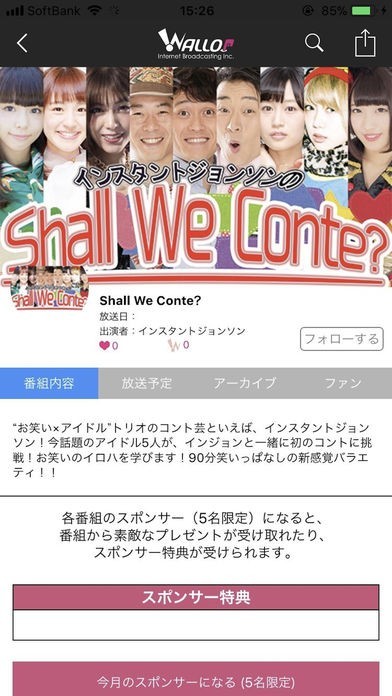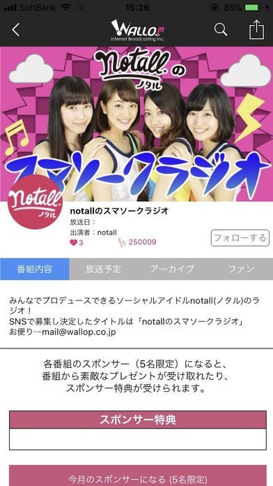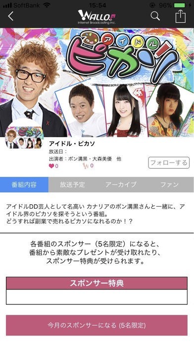 WALLOPで放送されている番組は視聴者のスポンサーで成り立っています。簡単に誰でもスポンサーになることが出来て、スポンサーになることでプレゼントや特典を受けることが出来るのでお勧めです。