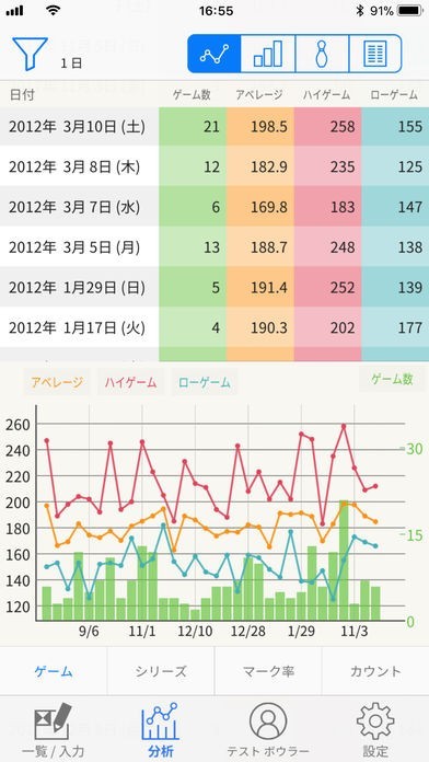ボーリングのスコアを継続的に残せて、自身のプレイを振り返れるので助かります!