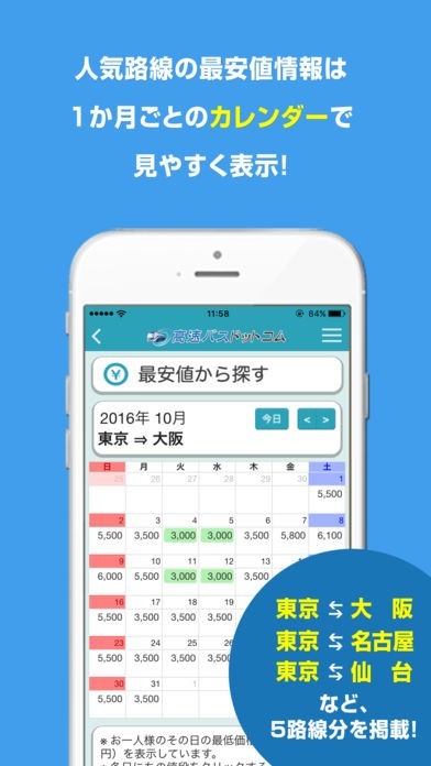 高速バスの予約手続きが進められると同時に、カレンダー形式で空き状況をチェック出来るのが良かったです