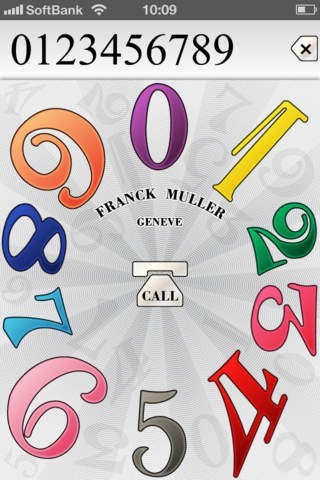 電話を掛ける時の数字のキーパッドが、フランク・ミュラーのビザン数字にしてみました。