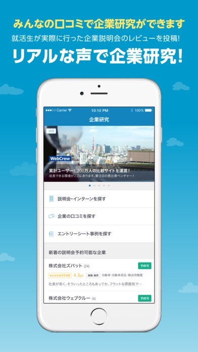 App Storeより引用累計20万ダウンロードの新卒就活スカウトツール!