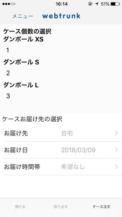 WEBTRUNKのお客様には専用の保管内容を登録するページをご用意しています。