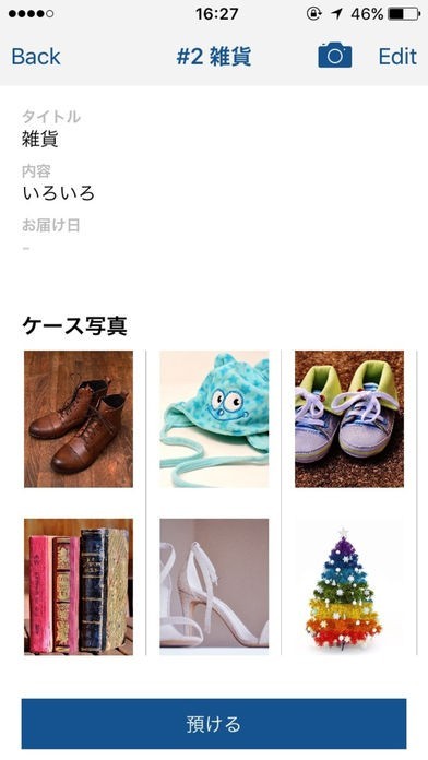保管内容はケース毎に文字とカメラ画像を登録することができます。内容登録は会員期間にいつでも何回でも修正可能です。