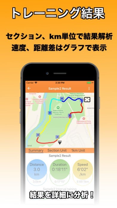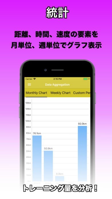 統計計算を行うことができます。距離、時間、平均速度の3種類を計算可能。グラフ表示も行えるため、一定期間ごとに自分の統計をチェックすれば、実力アップを確認することができます。