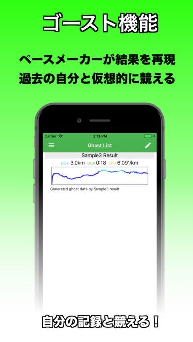 ゴースト機能を搭載しています。過去の自分の記録と仮想競争が行えるため、自己最高記録を打ち破りたい時にも活躍してくれます。また、データを入力してライバルとの仮想競争も楽しめます。