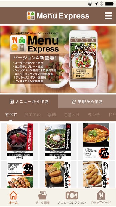 スマートフォンで手軽にメニューを作成することができる!