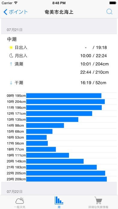 海の気象予報なので、海に行く前に天気はもちろん、マリンスポーツをする前にも潮回り、潮汐見れてすごく便利