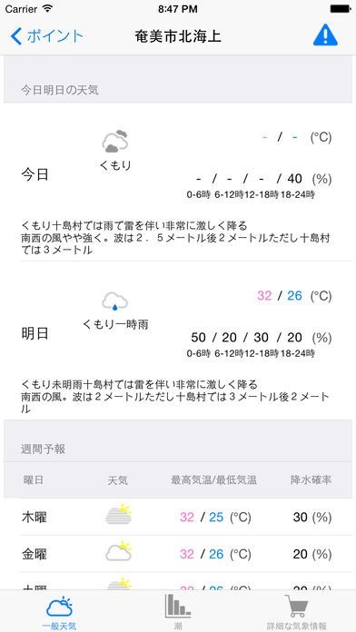 島嶼部と海に特化して詳しい気象情報を表示してくれるので、ダイビングのお供に欠かせません。