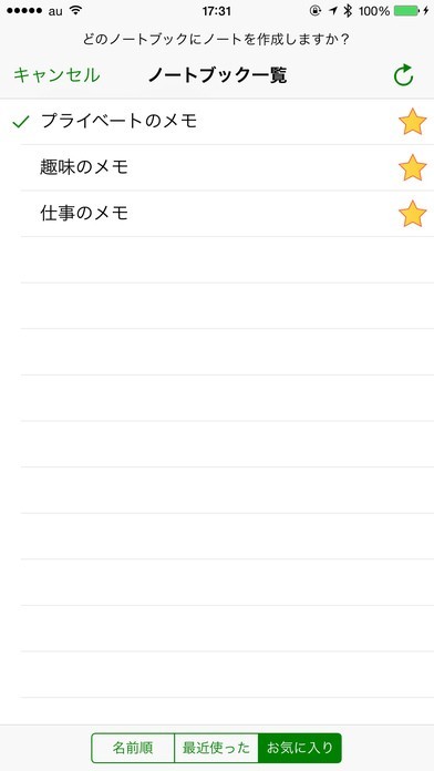 作成したノートは、最近使った・お気に入り・名前順のいずれか選択して、すぐに表示させることができます。そのため自分が探しているノートが見つけやすくなっております。