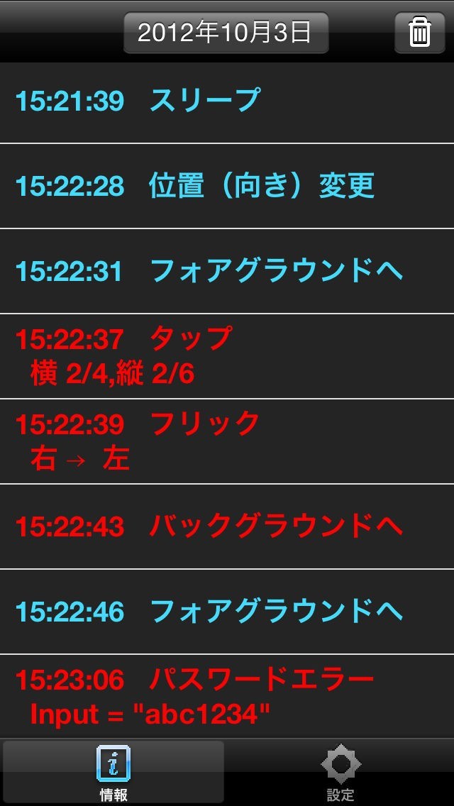 ・バックグラウンド移行時(ホームボタン押下時)に警告出力