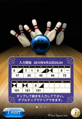 ボーリングのスコア記録ができ自己分析資料として活躍、リアルタイムでツイートを楽しみながらボーリングをしたいシーンに最適
