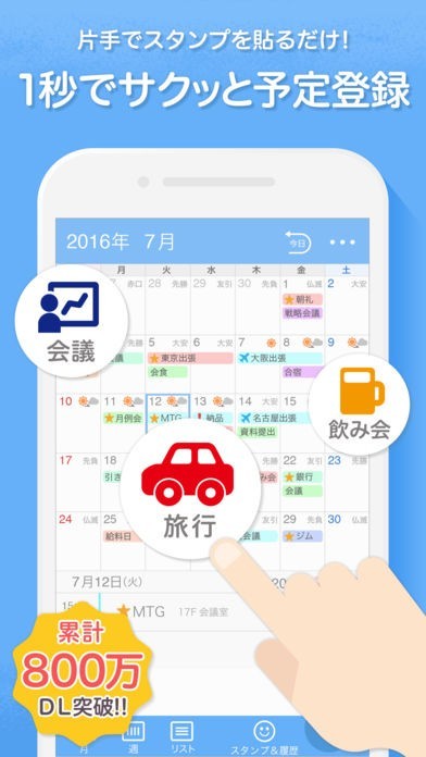 飲み会や映画などスタンプを張り付けるだけ!見た目もかわいいカレンダー!!