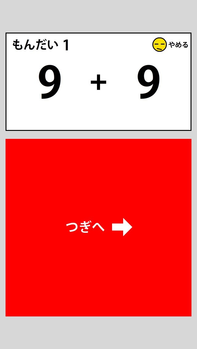 表示される計算問題(足し算 または 引き算)に答えて行って、正解数と時間を競います。