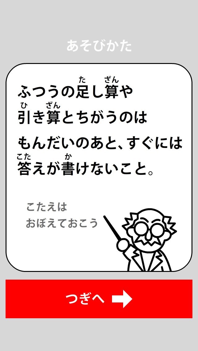 普通の計算ドリルなどとの違いは、答えがすぐには入力できないこと。