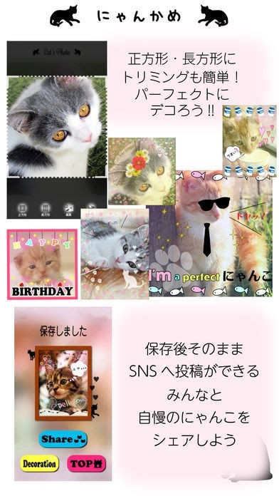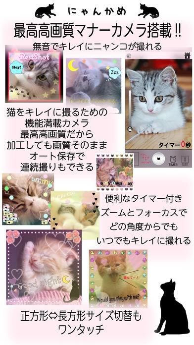にゃんかめ 高画質マナー(無音)カメラ 〜猫のためのデコアプリ〜のスクリーンショット