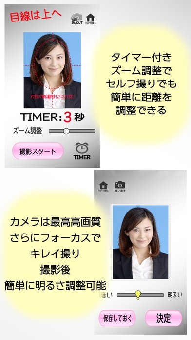 証明写真 〜タイマー・ズーム・明るさ調整〜のスクリーンショット