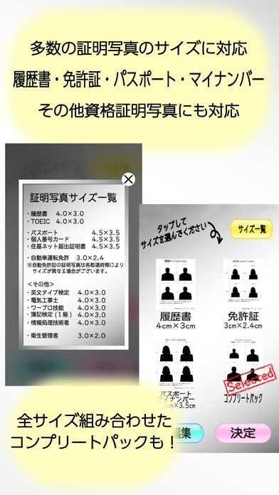 街で見かける証明写真機を使用すると必要な証明写真のサイズぴったりの写真を手に入れることができますが、お金がかかってしまうので困っているという人に最適なアプリが「証明写真」です。このアプリはスマートフォンのカメラを使って自分で写真を撮影して、パスポートや履歴書などのサイズに調整して印刷することができるようになっているのでリーズナブルに証明写真を手に入れることができるようになります。タイマー機能付きなので自分一人でも写真撮影ができるだけでなく、スライドバーで簡単に明るさ調整をすることも可能になっているので、きれいな証明写真を作ることができます。