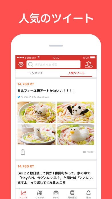 リアルタイムで話題のニュースや人気のツイートがわかる、無料の検索アプリ