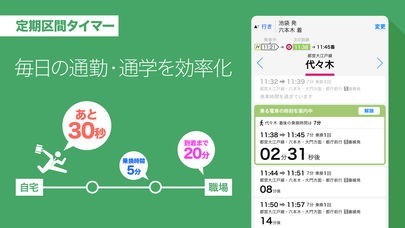 通勤タイマーを設定することにより、乗り換え防止のカウントダウンもあり