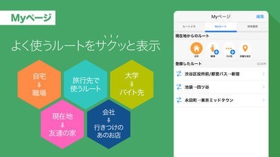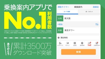 Yahoo! Japanが提供しており、乗換案内アプリの利用者数No.1の実績があります。出発地から目的地までの乗換ルートを素早く検索してくれます。経由駅も3駅まで指定でき、仮に乗り遅れたとしても、「1本後検索」を使えばすぐに次の電車が分かるので便利です。また、マイページ機能が充実しており、ルートメモ、Myルート、検索履歴をマイページに集約することができ、使えば使うほど便利になる乗換案内アプリです。