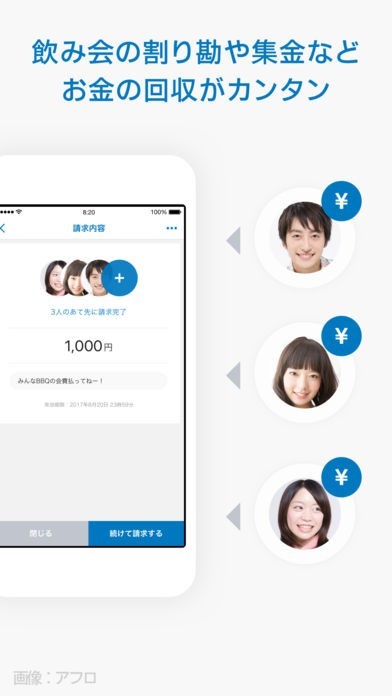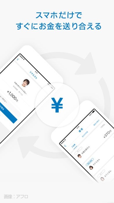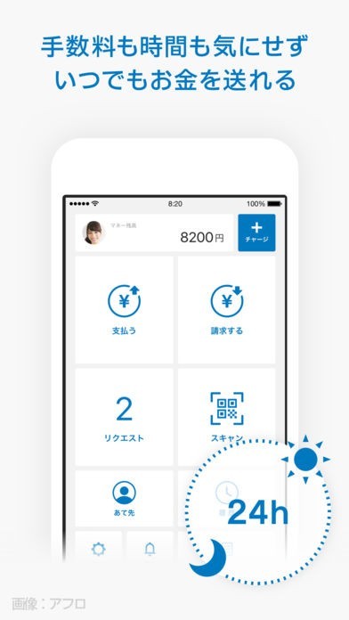 スマートフォンを使ってユーザー同士でお金のやり取りをすることができるアプリとなっていて、割り勘もスムーズに完了することが可能で、24時間手数料無料で利用できます。