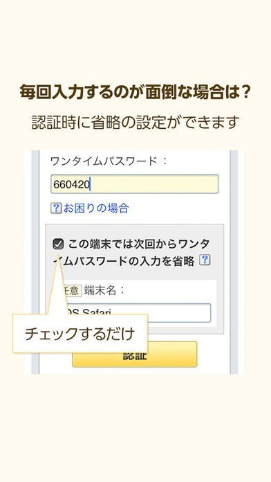 ワンタイムパスワードの入力省略に設定しておくとスムーズにログインできる
