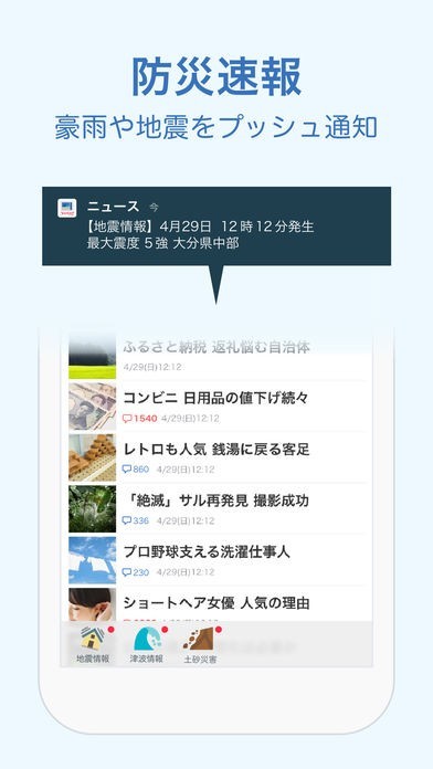 重大ニュースや災害情報なども通知でお知らせ