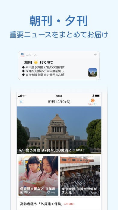バランス良いニュースを届けてくれます。ニュースのテーマを選べるのも便利。ただコメントがスクロールを邪魔するように出てくるのは鬱陶しいです。