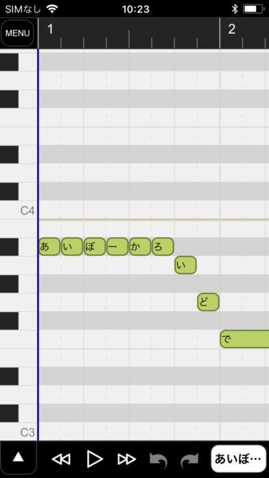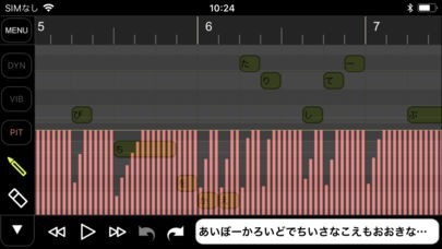 その場で思いついた曲をアプリの鍵盤にひらがなを打ち込む事でその音階で発音してくれます。調整なしでもかなり正確に発音してくれるので即興でメロディーを歌わせることが出来ます。