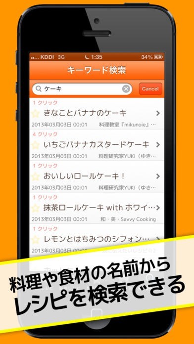 ・料理や食材の名前からレシピを検索できます。