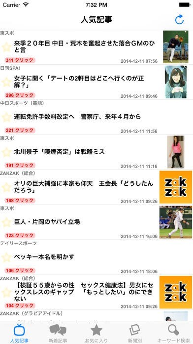 スポーツ新聞-全紙無料!iPhoneで手軽に読めるスポーツ・芸能ニュースアプリのスクリーンショット