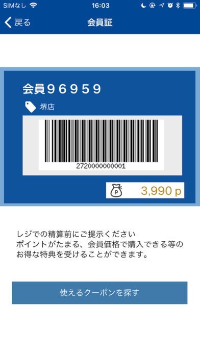 ■レジで画面を見せるだけ、会員証替わりになります。ポイントも確認でき、カードの携帯が不要です!