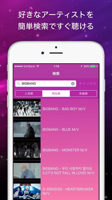 App Storeより引用無料音楽アプリの決定版!!最新のヒット曲や懐メロ、人気の洋楽、オルゴールやヒーリングなどの癒し系BGM、カフェミュージックなどのオシャレBGM等あなたのお気に入りの音楽がきっと見つかる!
