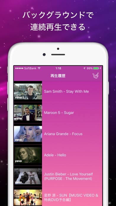 バックグラウンド再生はもちろん、iPhoneを横にするとフルスクリーンで動画が見れたり、便利なおやすみタイマー付き!