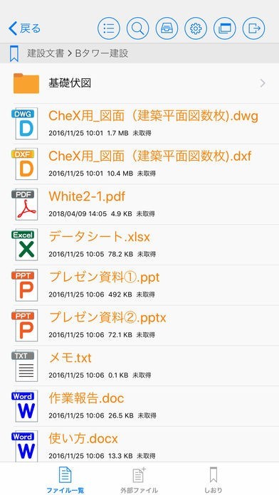 図面が保存されているデータはもちろん、ちょっとしたコメントを残したワードファイルや建築に関するデータをまとめたExcelデータなどをアプリ内で一括管理することができます。