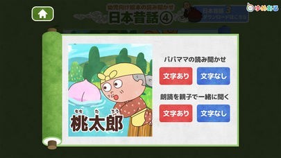 App Storeより引用大人から子供まで楽しめる文章短めの日本昔話の動く絵本アプリです。