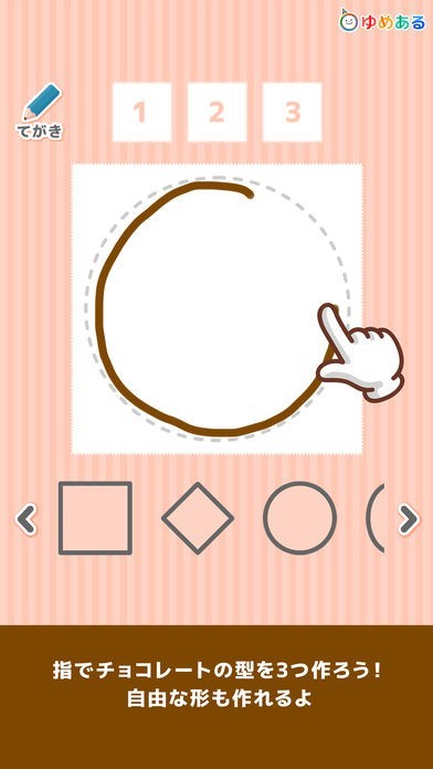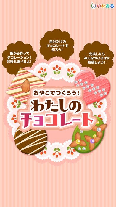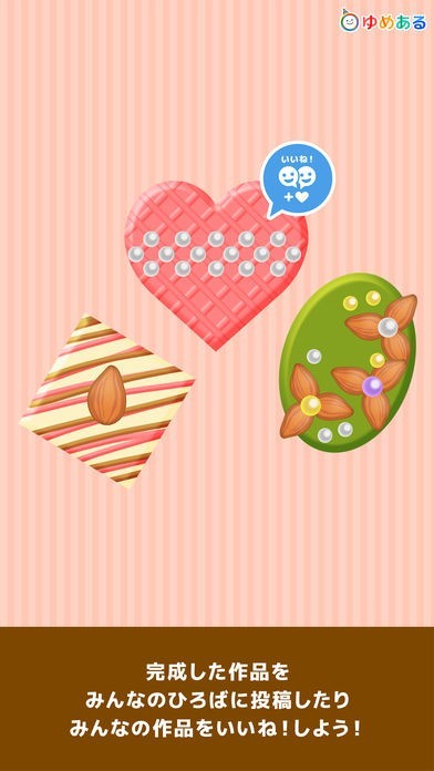 携帯の中でチョコレートの型や味を選び、チョコペンを使って素敵にデコレーションし世界に一つだけしかないチョコレート作りを楽しめるゲームアプリです。本物に挑戦する前の予行練習にしてもおすすめです。